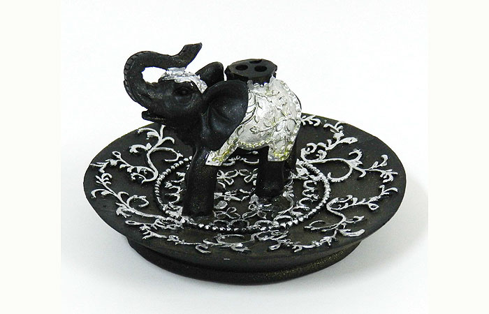 Elefante porta sahumerio de resina negro y plateado